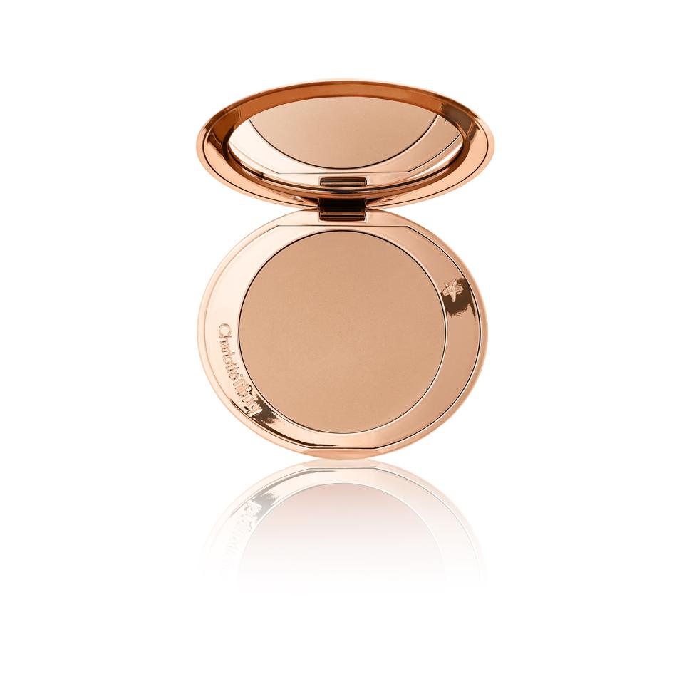 Este mate El bronceador prácticamente viene con un filtro incorporado, cortesía de sílice de enfoque suave que refleja la luz para un resplandor de apariencia natural. También hay ácido hialurónico para una hidratación instantánea, mica tratada con aminoácidos para una piel sedosa y polvos perfeccionadores súper finos. Bono: el bastante compacto se puede recargar fácilmente, por lo que también es ecológico. $ 55, charlottetilbury.com