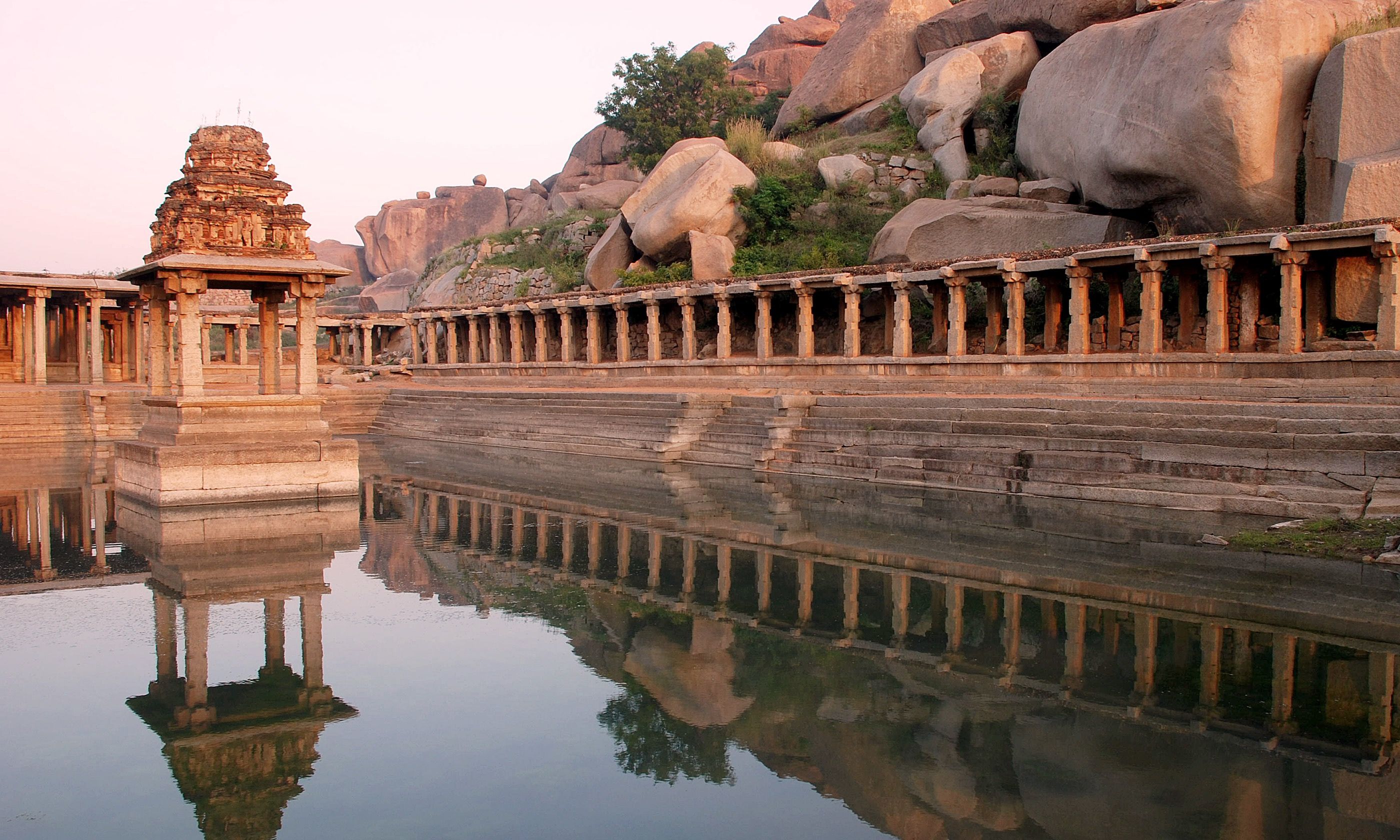 Le site est sillonné d’un réseau de canaux d’irrigation utilisés pour amener l’eau de la rivière Tungabhadra pour remplir les bassins et les bains de la capitale. L’eau à l’intérieur des temples était fournie par des aqueducs souterrains, cachés pendant des siècles avant d’être découverte par les archéologues.