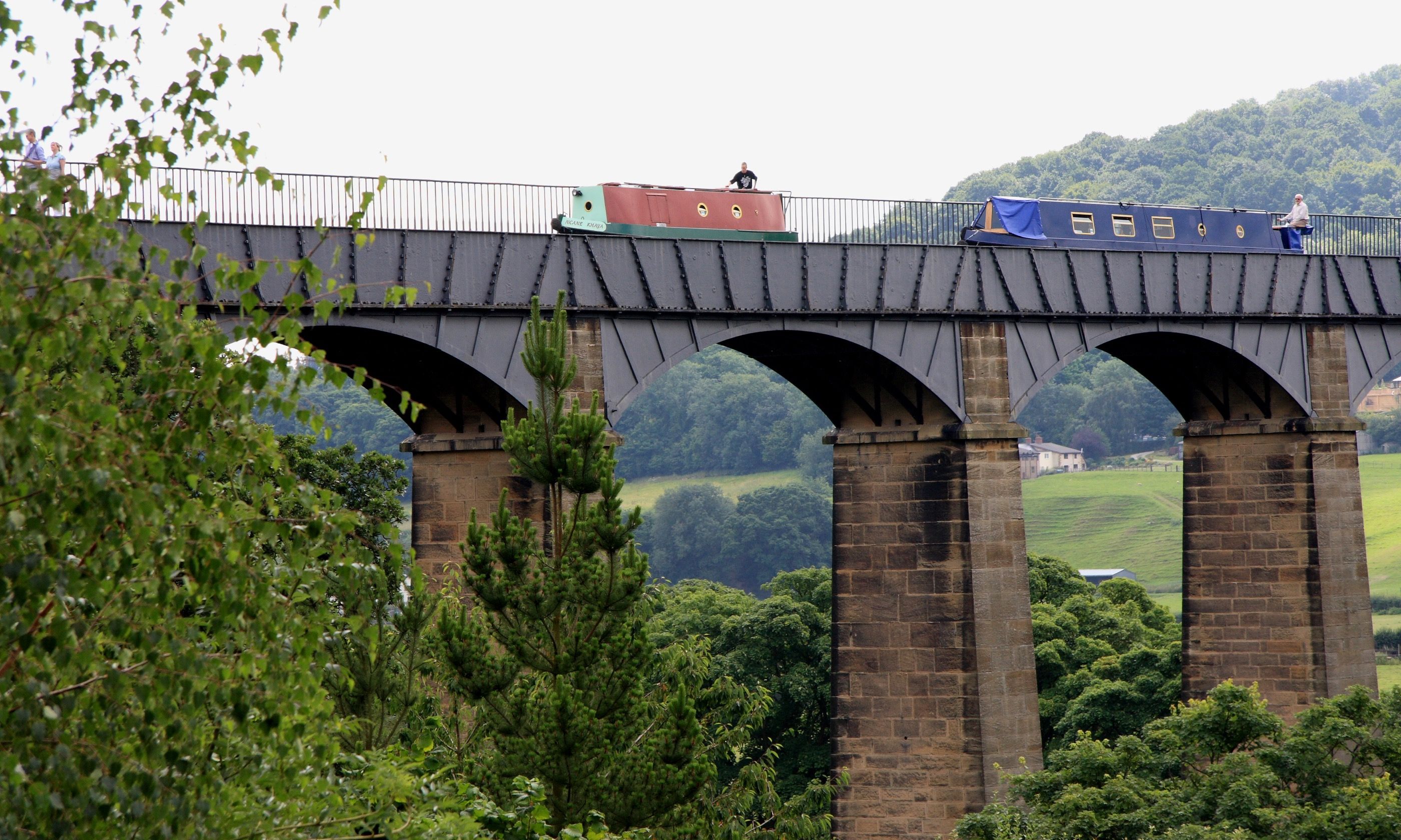 L’aqueduc de Pontcysyllte traverse la vallée de Dee au Pays de Galles sur 19 travées en fer forgé , 39 mètres de haut, et est considéré comme un exemple pionnier de construction en fer et un chef-d’œuvre de l’ingénierie des voies navigables. Il est encore utilisé aujourd’hui par les bateaux de plaisance – la traversée en grand classique est un plaisir rare.