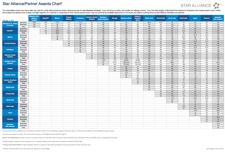 Les prix de récompense générés par cet outil correspondaient généralement à ceux de Star Alliance / Tableau des récompenses des partenaires publié précédemment par United – avec seulement quelques primes plus élevées: