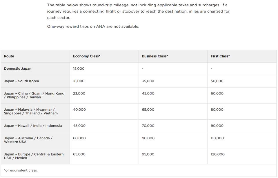 Par exemple, les vols primes ANA entre les États-Unis et le Japon coûtent désormais: